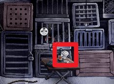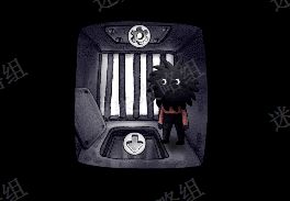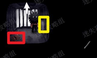 5.点击下箭头进到海报笼子里,右边撬铁棍的地方爬进去,点击放大镜,