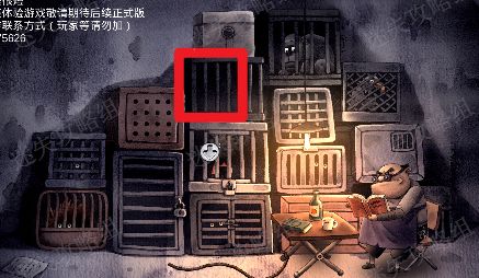 3.下来后,地上的海报点击放大镜查看是一张大胡子马戏团的海报,笼子右边撬下一根铁棍,点击上去的箭头,回到最初的箱子,对上面的铁板使用硬币,打开后上去