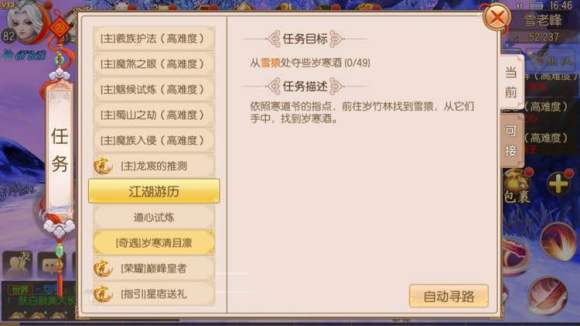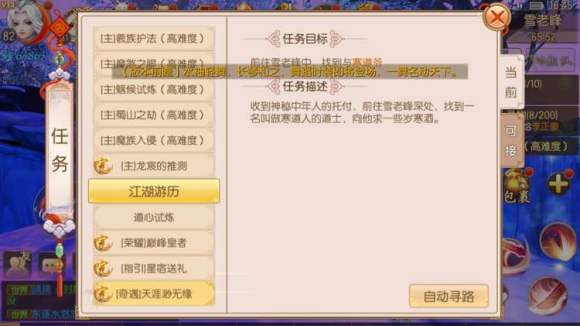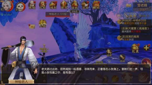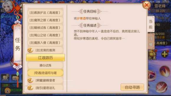 概述:携带十个蜂蜜饮在雪老峰坐标38.38中心及周围转悠有概率触发第一轮奇遇任务,打完怪有几率触发第二轮奇遇任务。完成第二轮任务即可获得称号