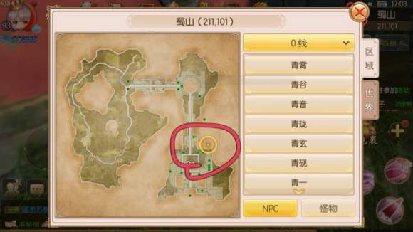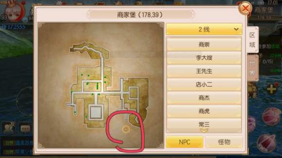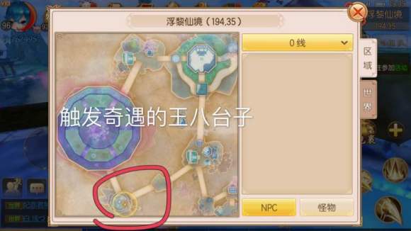 概述:在下图头部跟尾部位置坐标来回跑或绕圈跑就有几率触发。触发后需要2分钟内组好队,五分钟打通六波怪物,打通即可获得称号。