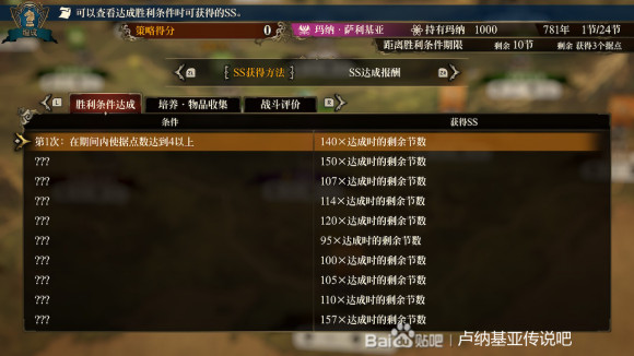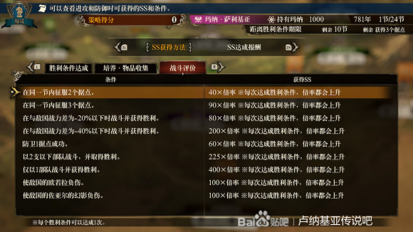 胜利条件要求玩家在规定的游戏节数内占领一定数量的据点,其获取规则是A=系数×剩余节数