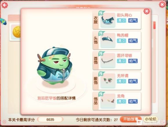 至此已经过了10关9个绝世 这一关大多数需要可爱或者帅气 这两种性格可以通过在商店染色来提升分数 分别是粉红和蓝色(可能会记错,建议参考区内排行)