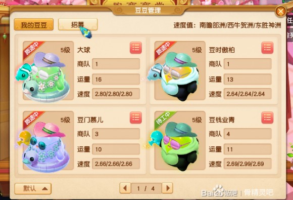 当钱有三四千时,可以招募新豆豆和开辟新商队,我建议这两项一起做,不要只招募新豆豆然后加入大球的商队,因为新豆豆的速度肯定比大球慢,然后两人在一起的话大球的速度会被新豆豆拖累,所以开辟新的商队让新豆豆去带队才更合理。开辟新商队需要花费1000通宝,招募新豆豆需要花费300通宝。然后新豆豆商队的发展可以直接仿照大球商队的样式。