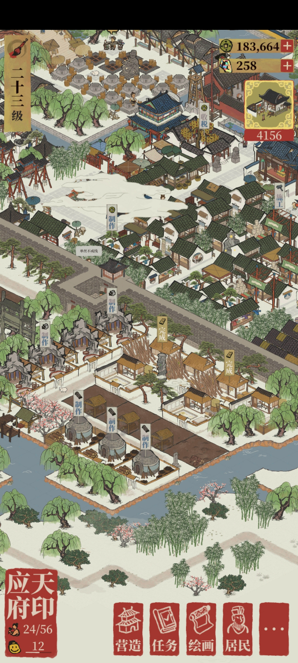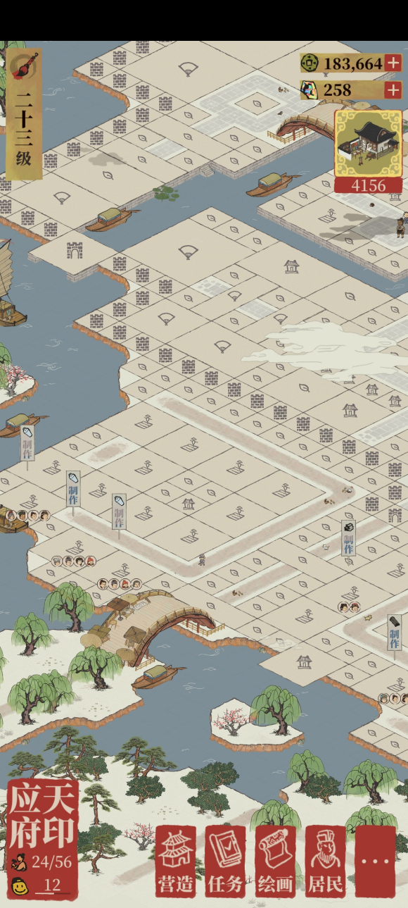 新手玩家在建筑方面主要跟着任务走,赚一波铜钱和经验。熟悉游戏模式和主要的玩法。