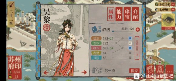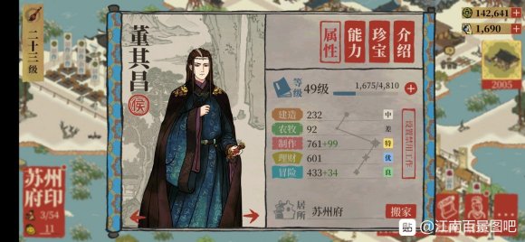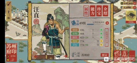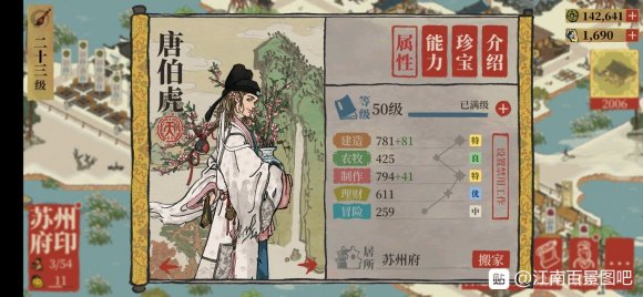 唐伯虎,虽然技能菜,但是你看这属性,高的可怕,制造加成一半以上,建筑减半时间,也是很厉害的人物了!