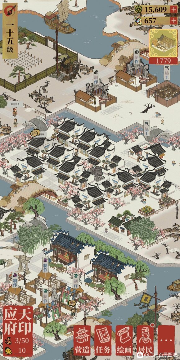 既然游戏名是江南百景图又是水墨古风,规划应该乱中有序若隐若现,建筑与景观的相互遮掩搭配带点小桥流水人家的感觉。显然城乡结合部,新农村气象,江南军事基地,现代仿古园林影视城等等那些横七竖八的摆放实在不搭调明朝时的江南百景
