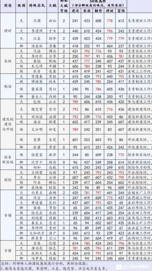 感谢吧友我的晴天暖暖的提供的人物满级属性图 有些天级初始属性烂 但是成长高 这些人物建议大家等中后期资源丰富了再养 我自己是以能力养人的 谁的能力好就先养谁 属性的话等级高了就都高了 有特级的属性到50级基本都能上700+