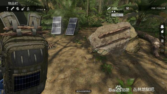 堆完篝火,发现没有打火机,也没有火柴,只能用最原始的办法取火,也就是钻木取火,先造一个手摇钻,材料也简单就是木棍加小木棍。