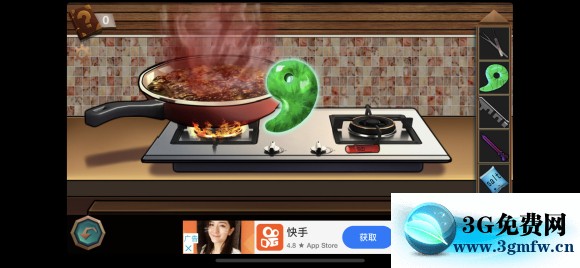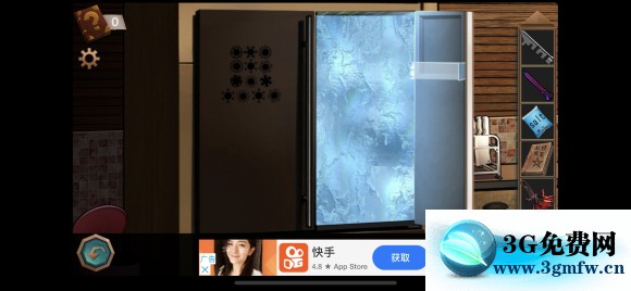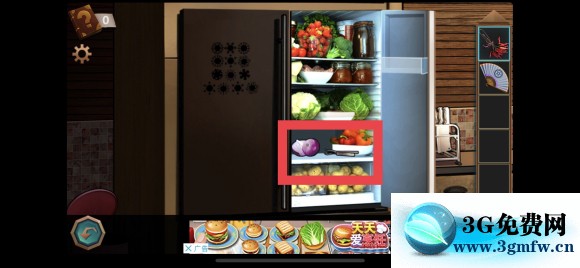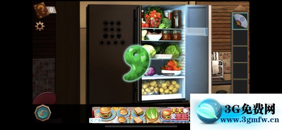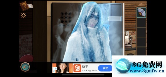 输入密码2169打开冰箱,用扇子扇出冰箱女鬼,继续完成找相同图案的游戏,完成后得到一个护符,再拿到洋葱和开锁器。