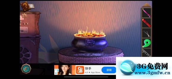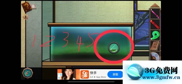 进入房间,看鱼缸解开保险柜密码,12345。得到一把黄色钥匙。继续点击鱼缸那个小圆圈,出现一个眼睛,用扇子扇,出现鱼缸鬼,书上说要用鱼竿,先不急,继续找。鱼缸旁的leilei密码是电话的按键534534,得到磁带。