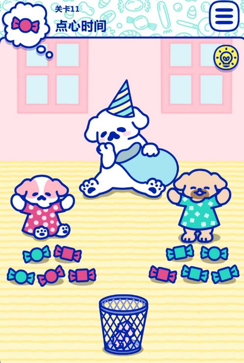 萌犬糖果的心愿第11关怎么过? 萌犬糖果的心愿攻略第11关 这关就是分糖果,分糖果把糖果拖到它们身上就行,两只狗都是五颗糖,不用区分颜色,注意掏出来的纸要拖进垃圾桶里。 老友网www.andlaou.com免费为你分享