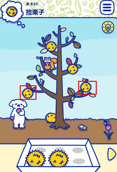 5.把橡果递给树上的松鼠,点击获取图中所示位置的两个毛球: