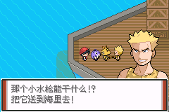 蚊香蛙和小赤被打下去后触发进化支线 躺着的小霞和定点闪光可达鸭(在上面) 进化珊瑚,让后面的伊布进化成19种属性,很强 上方宝可梦球点一下,然后进化成快泳蛙。回到甲板和马志士对战,胜利后马志士掉下船钥匙便跳船逃生了。军人素质果然过硬