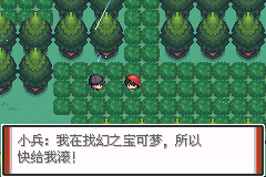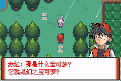 打败两位黑色衣服成员后发现了幻之宝可梦,这个地方有伤药。 玩家追过来发现幻之宝可梦在和某人对战,在他收回了小火龙后,我们上前**。 打赢了梦幻后,我们还是输了,劲敌一顿巴拉巴拉说我们太骄傲了,第一章 幻之宝可梦篇章结束。