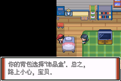 章节二: 丢失的宝可梦,妈妈让我们去见大木博士学东西[捣乱],得到了饰品盒,在背包就可以换衣服啦。