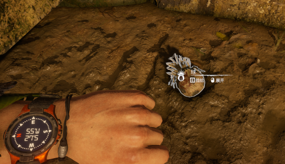 最后一个死藤水不要喝,西北方向上勾爪枪往回走到德尔塔营地那边,听完录音,到旁边石头上拿一个绿爪型蘑菇就好了