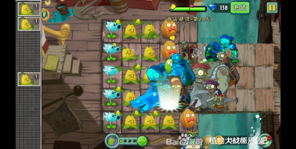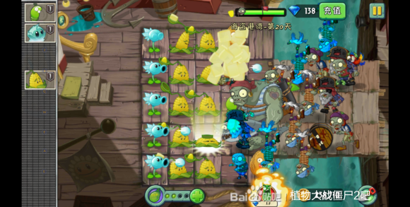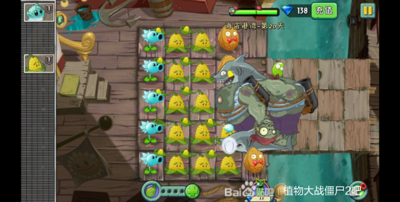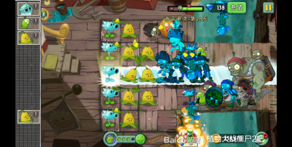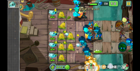 1. 开头的两个路障用寒冰射手和玉米投手轻松解决。