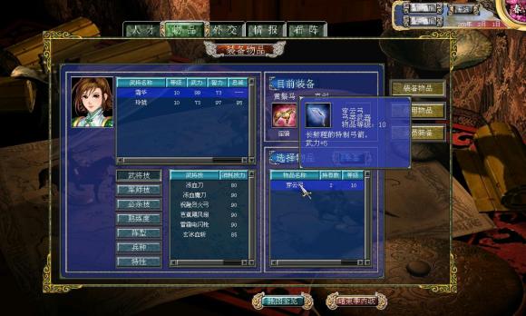 大概野外挂机2年左右的时间就能升到10级,那么很好,内政时把10级弓给武将上。