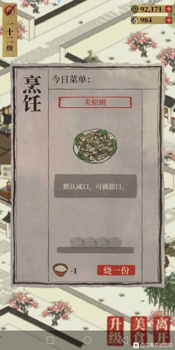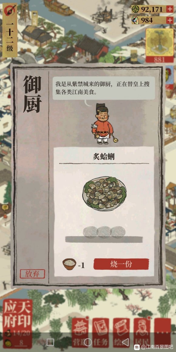 如果三个御厨都不需要食盐,就把这个菜单完成,刷下去。