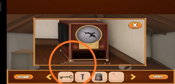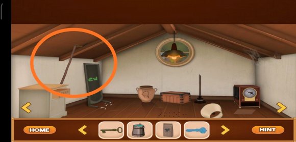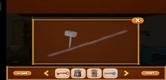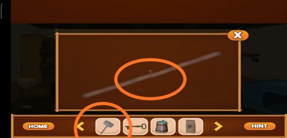 之前的螺丝刀开箱子,捡起螺丝钉,钉到两节棍子上(先把两节棍子合并)。用锤子敲棍子,得到完整的棍子拿来撩屋架的剪刀