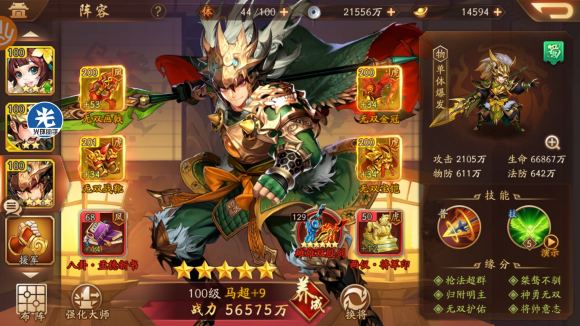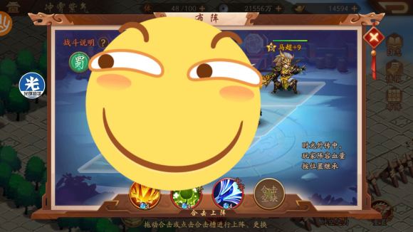 先上技能,单体攻击武将或者列伤武将属性和我马超差不多就行,这个攻击力马超打最后三个帐篷有点勉强能磨死,联系选个加攻击,一会后面哪一关选我会说到