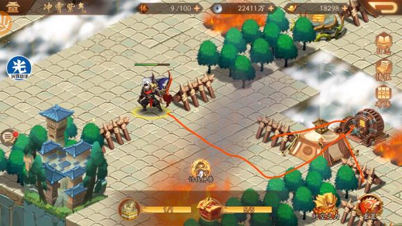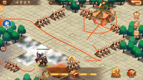 到这里不用多说,按路线打开机关往下走,技能可以两个减攻击(威慑八方)三个加血(济弱扶倾),如果是极限应该有人已经死了不用管,只要主力活着继续,另外主力存在位置不强求,不过越前面越好