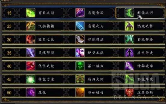 第二排我个人选择饥肠辘辘,改版后的饥肠辘辘增加恶魔之咬20%的伤害且额外增加5-10点怒气,考虑到版本初期绿字不足怒气的缺乏,我个人感觉加强后的饥肠辘辘增加怒气的体感比起献祭光环要来的更顺畅。