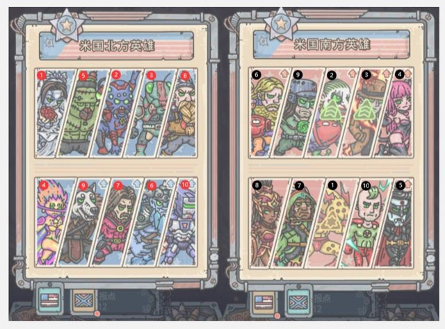 米国可以说是目前收益最高的地图,北方有装备宝箱产出,南方有大量黑蝌蚪产出,且根据官方爆料,米国的特性为资源加成类特性,所以米国无疑是挂机首选,目前米国荣誉值(升级米国特性)有两种手段获得,一是情报;二是升级英雄,英雄升级推荐: