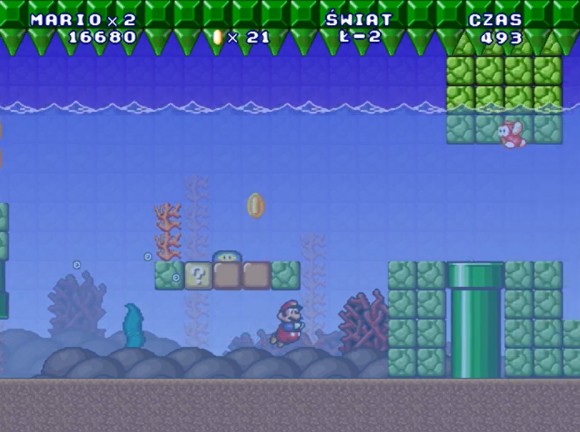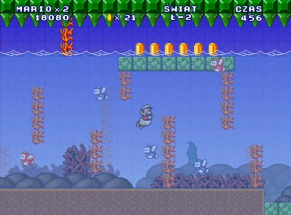 这一关是普通水下关与压顶刺关卡的结合,核心考查的是在水里细微调整马里奥的游泳动作躲避压顶刺