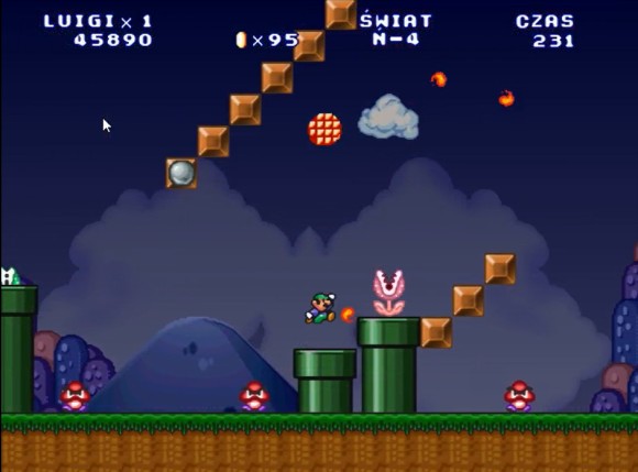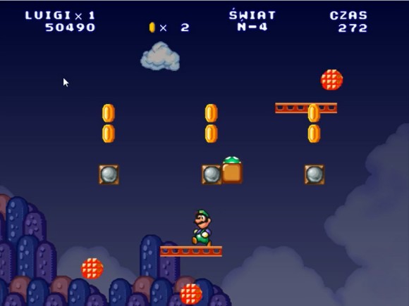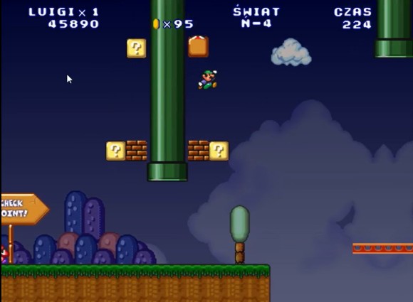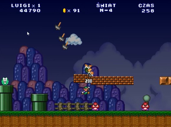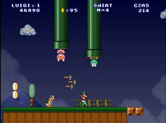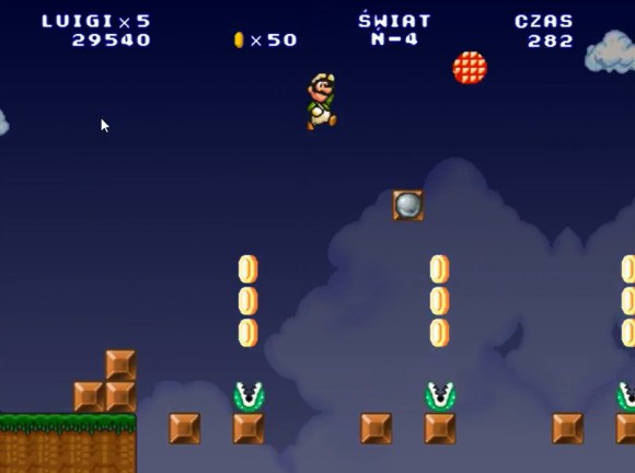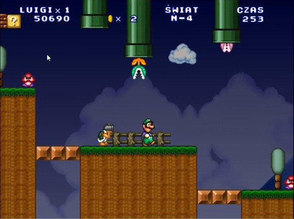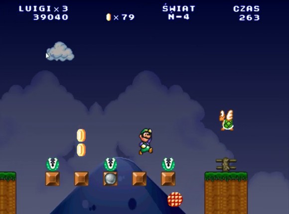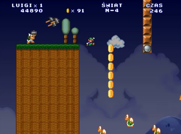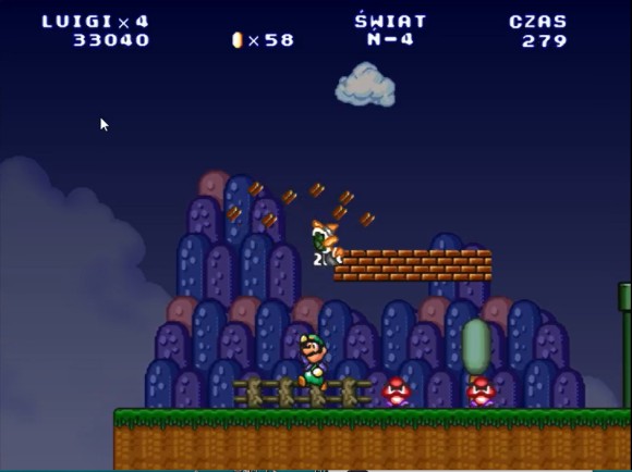 这里路易吉可以直接跳上去,马里奥需要找时机过去