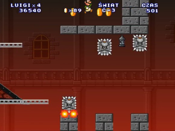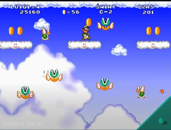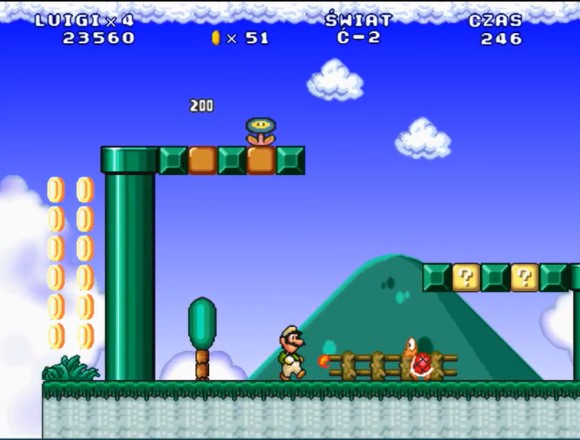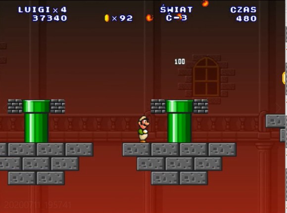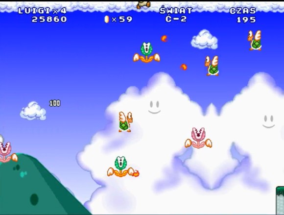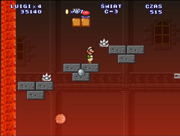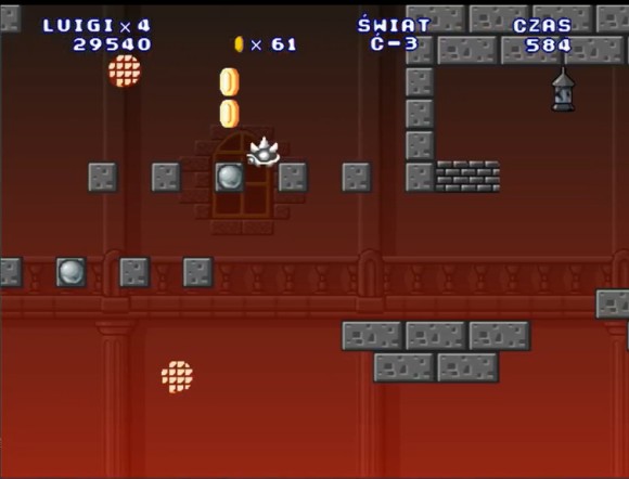 最后这里比较难,没有桥了,必须踩飞乌龟(如果是马里奥,每一个都要踩),踩的时候火球干扰性很大,前面就是终点