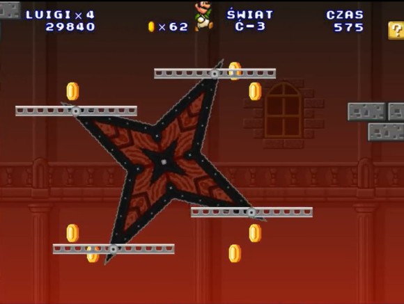 新设施:旋转平台,与字母世界U的不同,字母世界U的是链条判定,你必须在上面走动才不会掉下去,而这一关的平台是常规的移动桥判定了