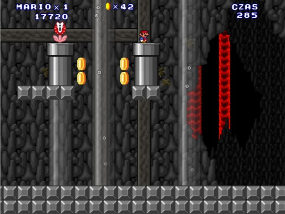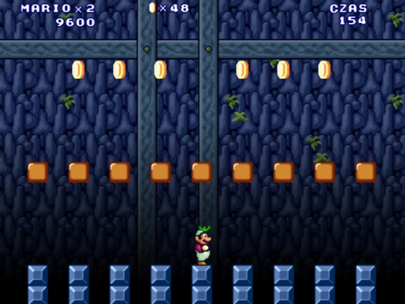 吃到上面的金币后小心这里的顶头跳,前面的往悬崖伸出一格的,还是比较简单的