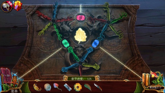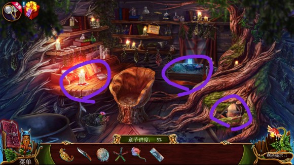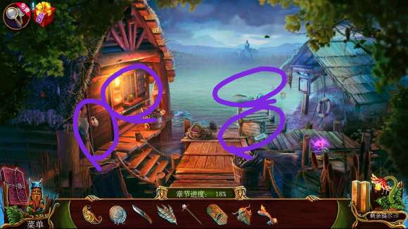 右侧大树左边的箱子,将两个箱子零件安上,进入小游戏——药水,医神蛇徽