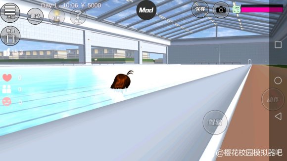 去学校游泳池,在旁边的光圈里换上泳衣,进到水里即可
