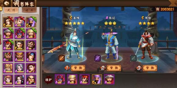 如果平民玩家或新手玩家一时间没有S级别的武将,我们则可用A级别的武将来替代,如:张辽、吕蒙、关羽等,张辽和吕蒙都属于那种以快制快类的武将,除了拥有群攻技能外,技能延续时间久可以为队友赢得宝贵的冷却时间。而关羽就显得很强势,他的技能延展性很强一旦被连上就会不休不止(看手速微操)完全能有和S级别武将一较长短的能力。