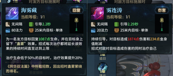 (4)使用海雾藏的同时,也能对身上存在蛊雾BUFF的友方单位产生治疗,因此广泛铺雾即为群疗。